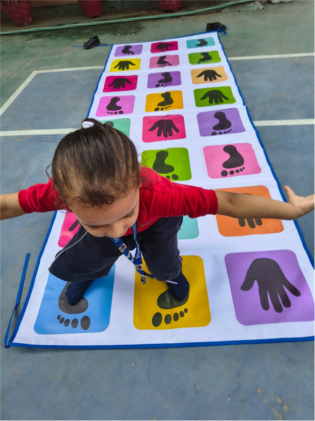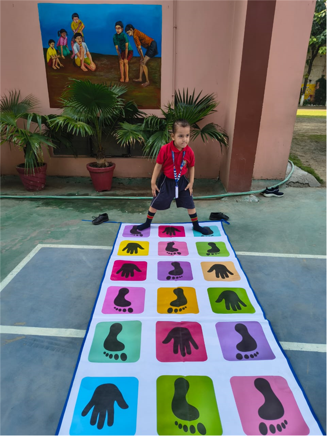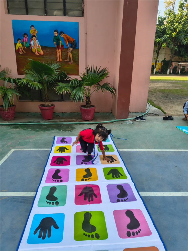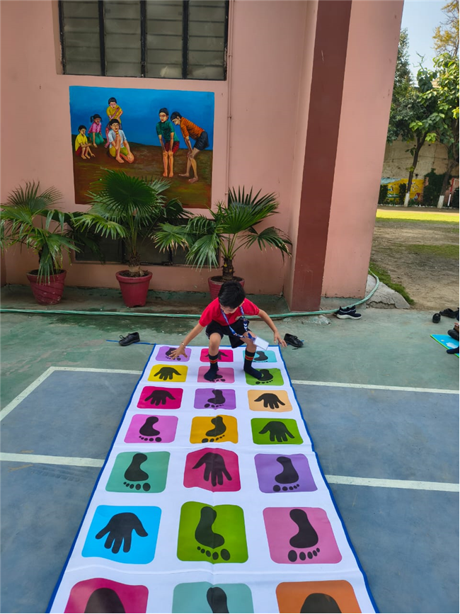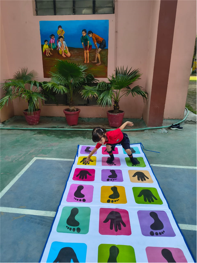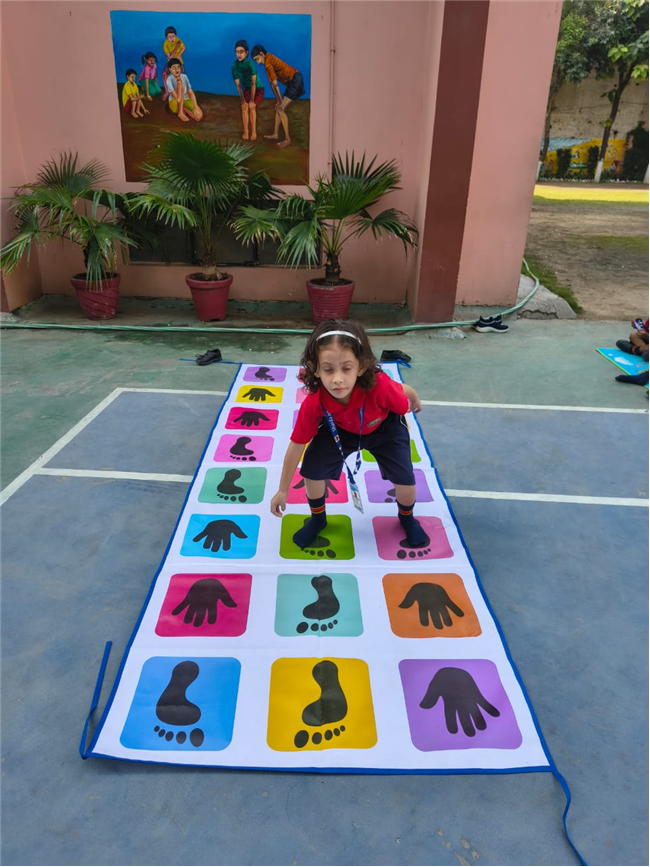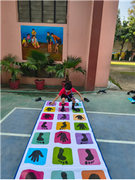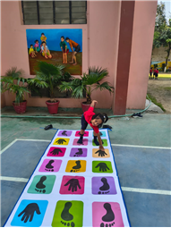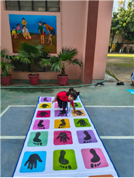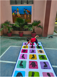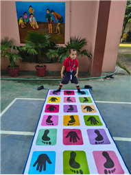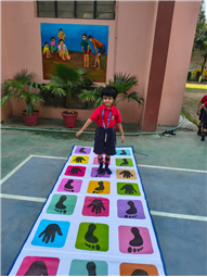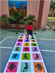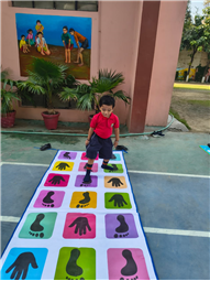 We had organized the hopscotch activity on the jumbo play mat. Students had actively followed the hand and foot prints, hopping and balancing with excitement. The activity had strengthened their hand–eye coordination, gross motor skills, balance, and concentration. They had thoroughly enjoyed this fun-filled learning experience.