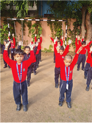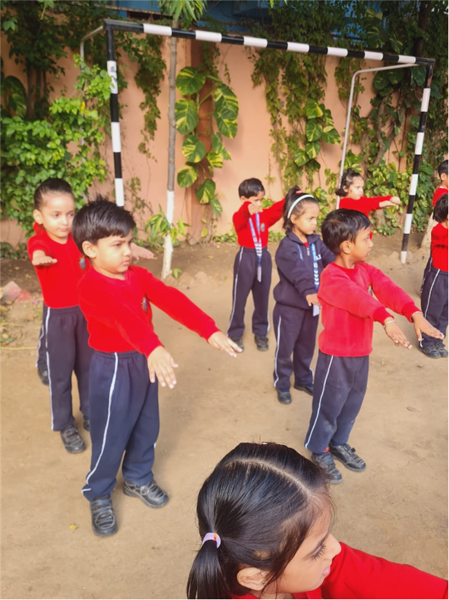 Students participated enthusiastically in various games that helped develope their gross and fine motor skills. They enjoyed activitiy like running, hopping, jumping, balancing. This game helped them to improve coordination, body balance, flexibility, and team spirit. Children learned to follow rules, take turns, and play cooperatively with their classmates.