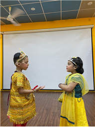 Dressed up as different characters like Lord Rama, Sita, Hanuman, Lakshman, and Ravana, the kids looked adorable and performed with great confidence. Through this activity, they not only enjoyed the joy of role play but also learned about the victory of good over evil.