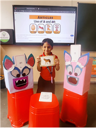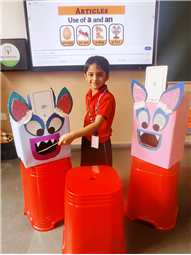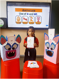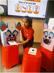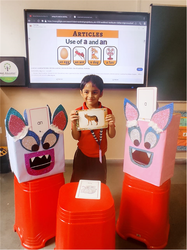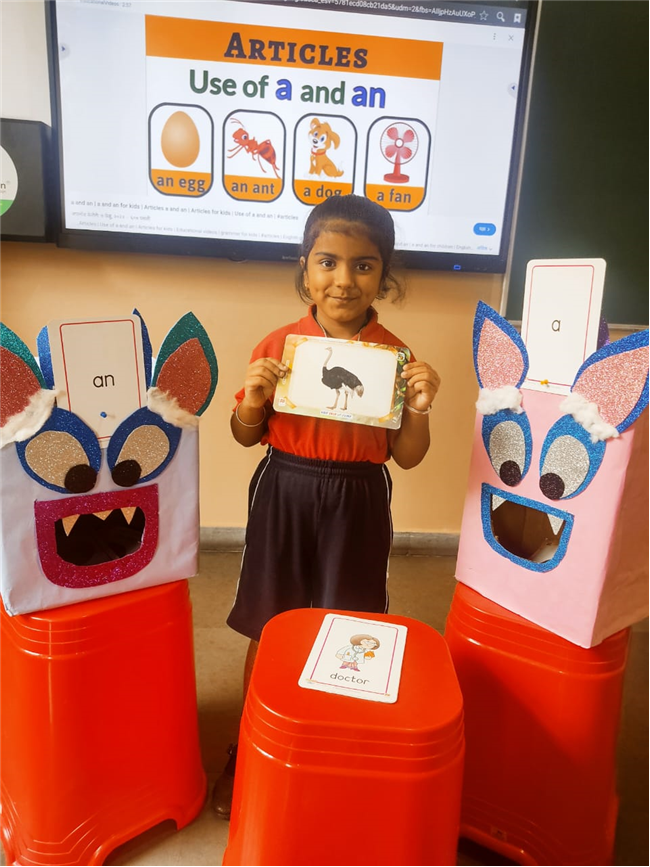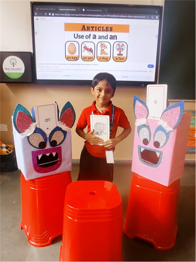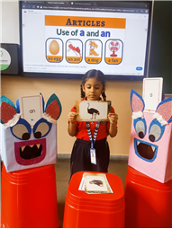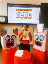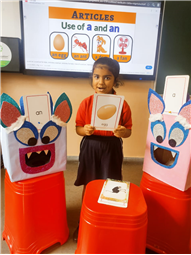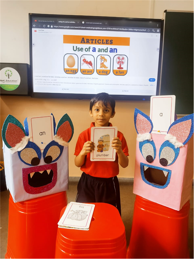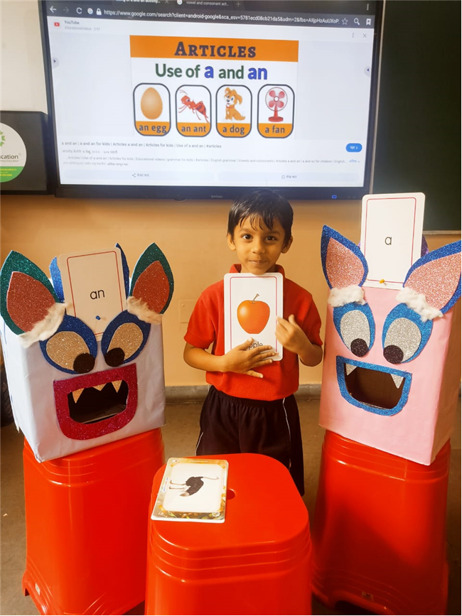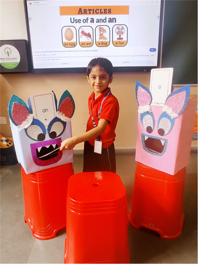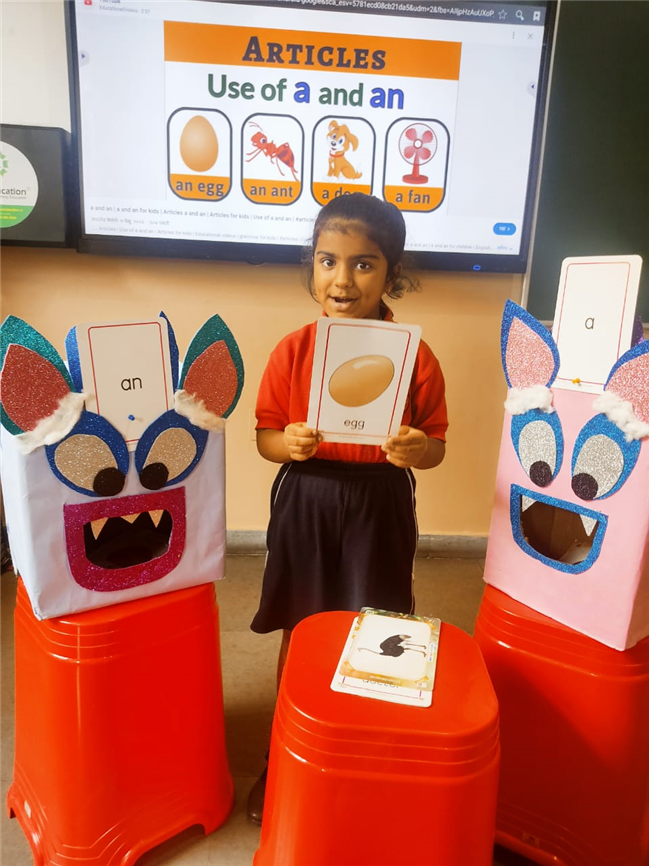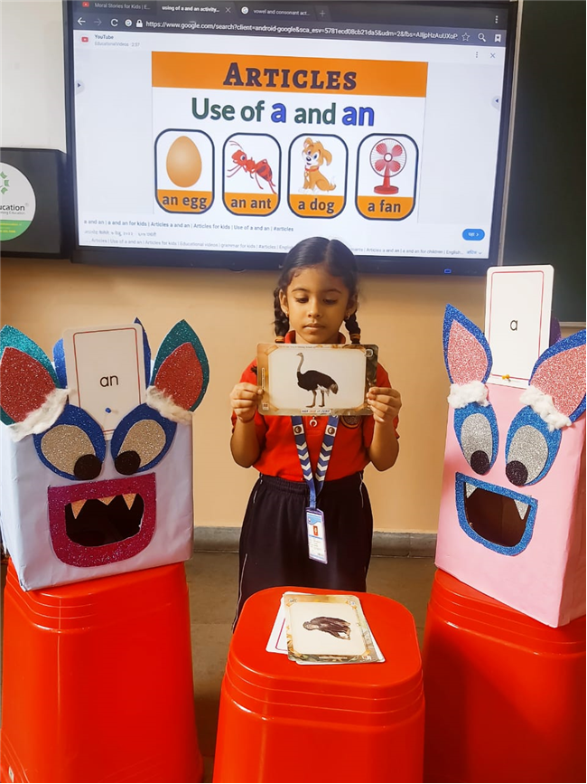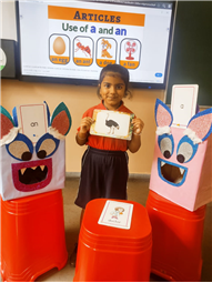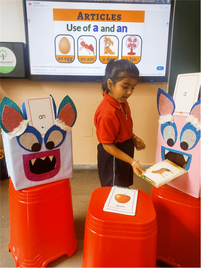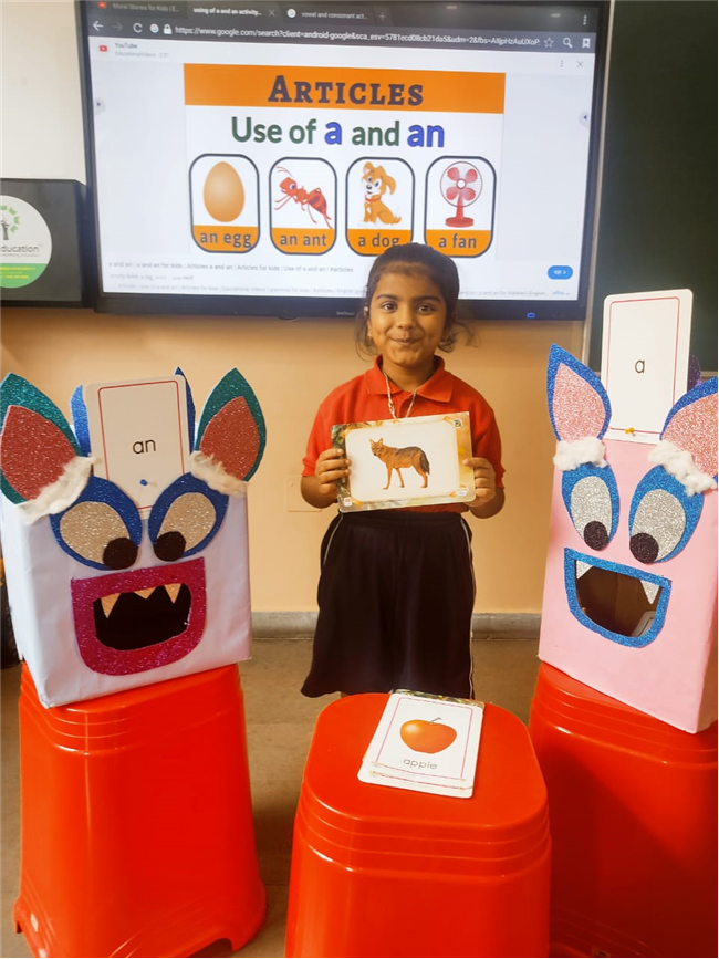 On 18th September, In our kindergarten class, children enjoyed a fun activity on learning the use of “a” and “an” with the help of colorful monster characters. We introduced two friendly monsters – A Monster who eats words that begin with consonants, and An Monster who eats words that begin with vowels. The children picked different picture cards like apple, cat, orange, bat, and igloo, and decided which monster the word should go to.