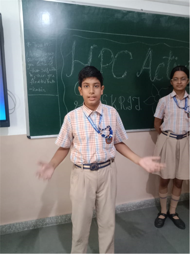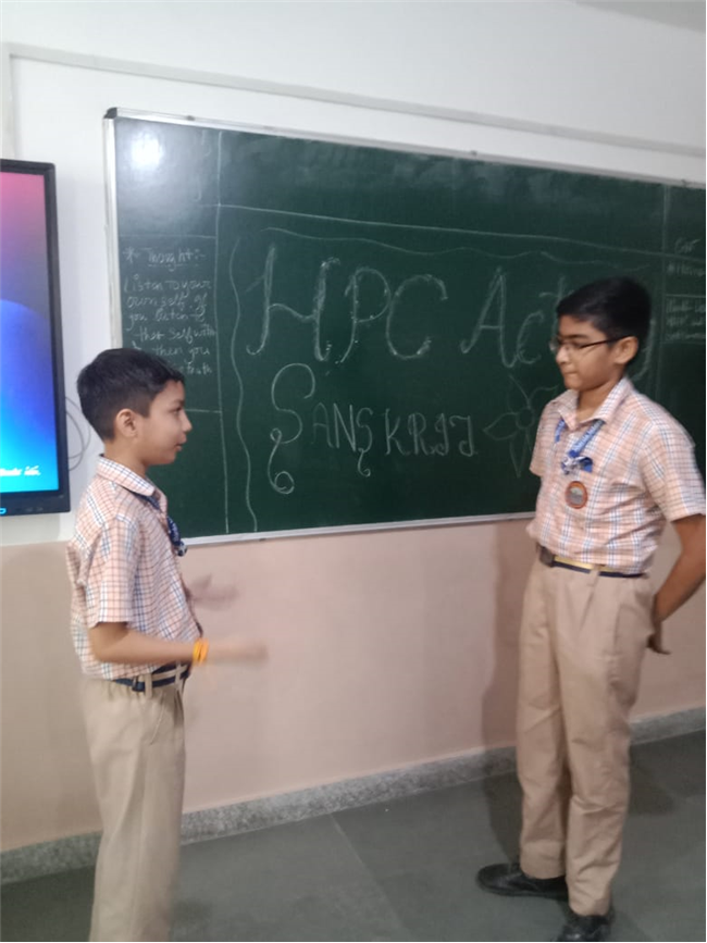 विद्यार्थियों की मौखिक अभिव्यक्ति एवं संस्कृत भाषण कौशल को विकसित करने के उद्देश्य से संस्कृत विषय में “पर्यावरण संरक्षण” विषय पर एच. पी. सी. गतिविधि का आयोजन किया गया।