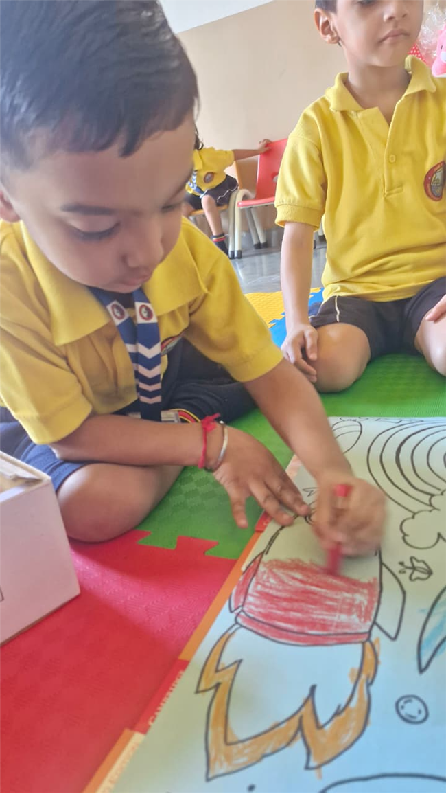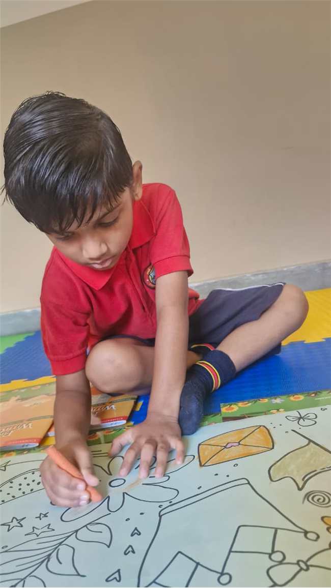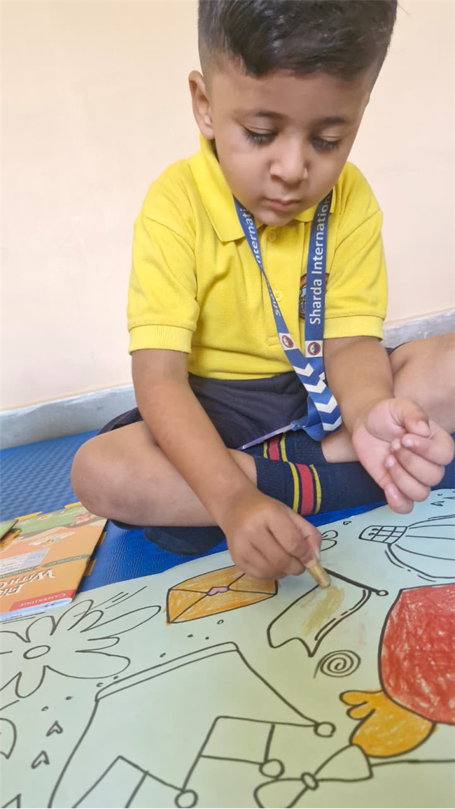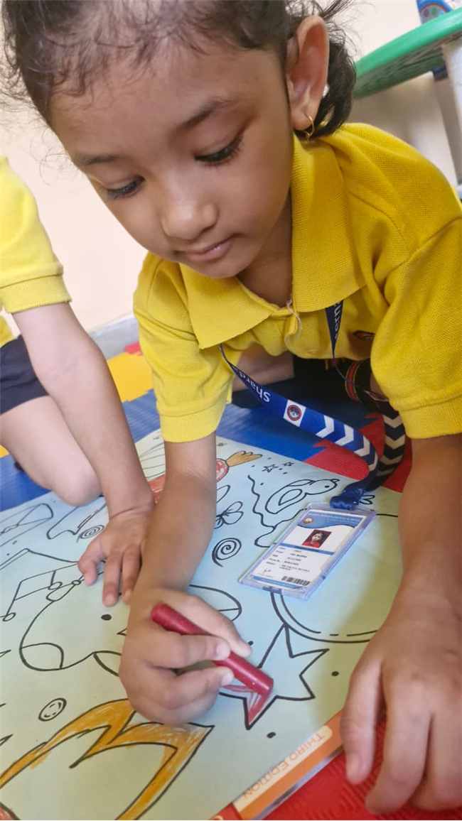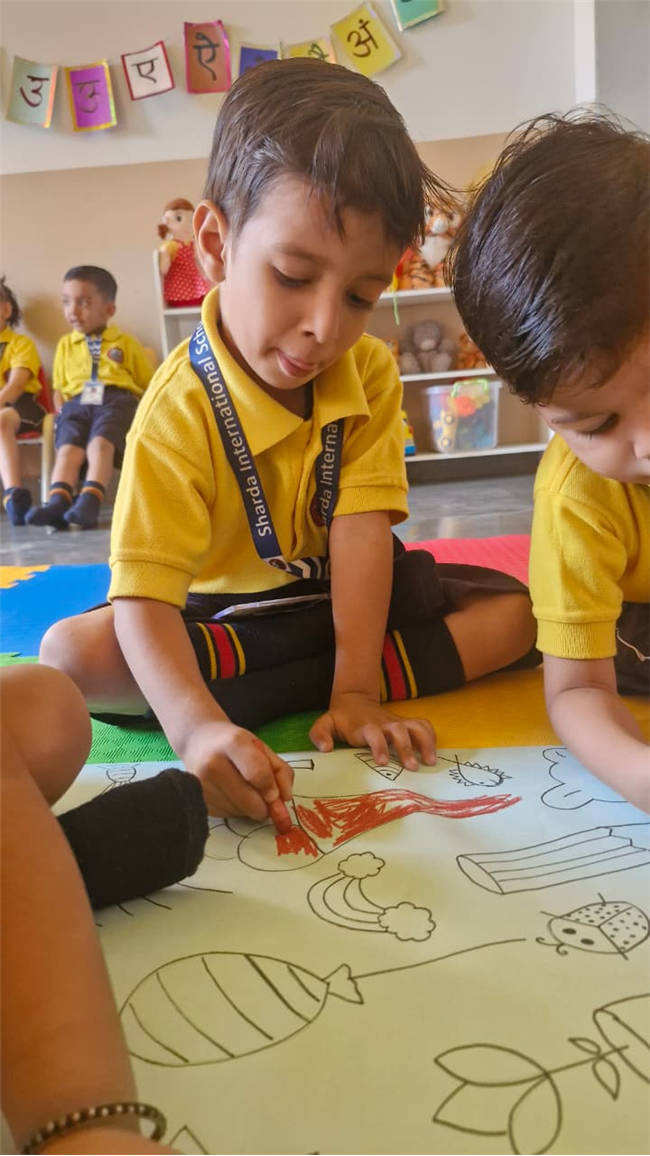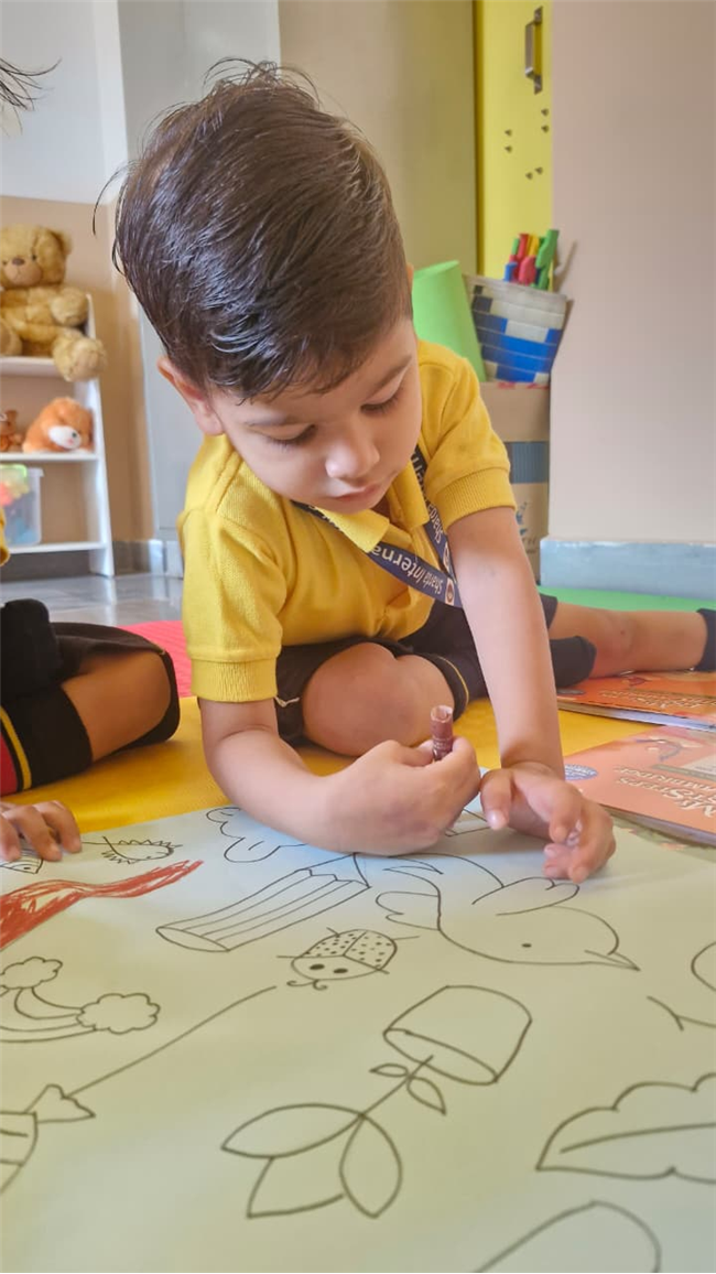 The activity helped the children to recognize different shapes and objects while enhancing their fine motor skills and focus. They took great interest in choosing their favorite colors and making their doodles come alive beautifully.