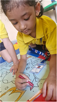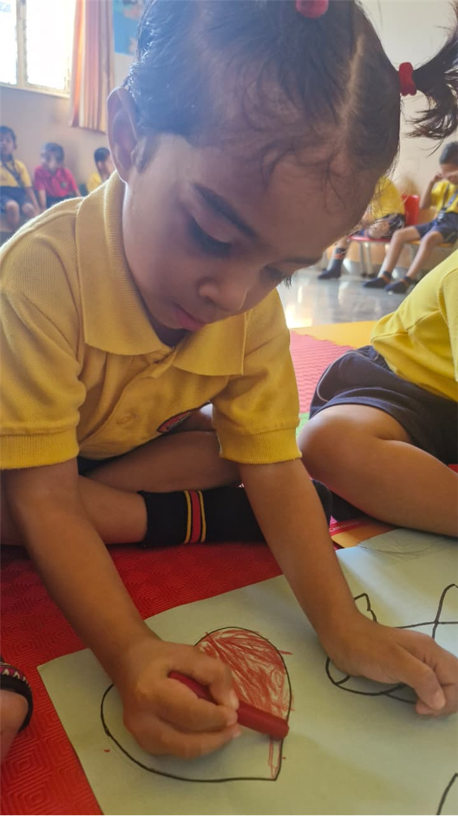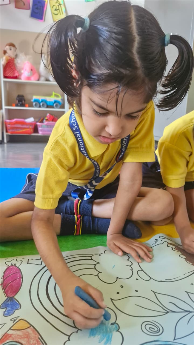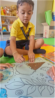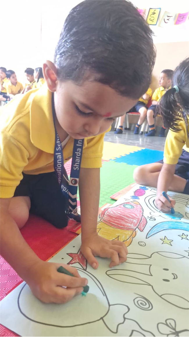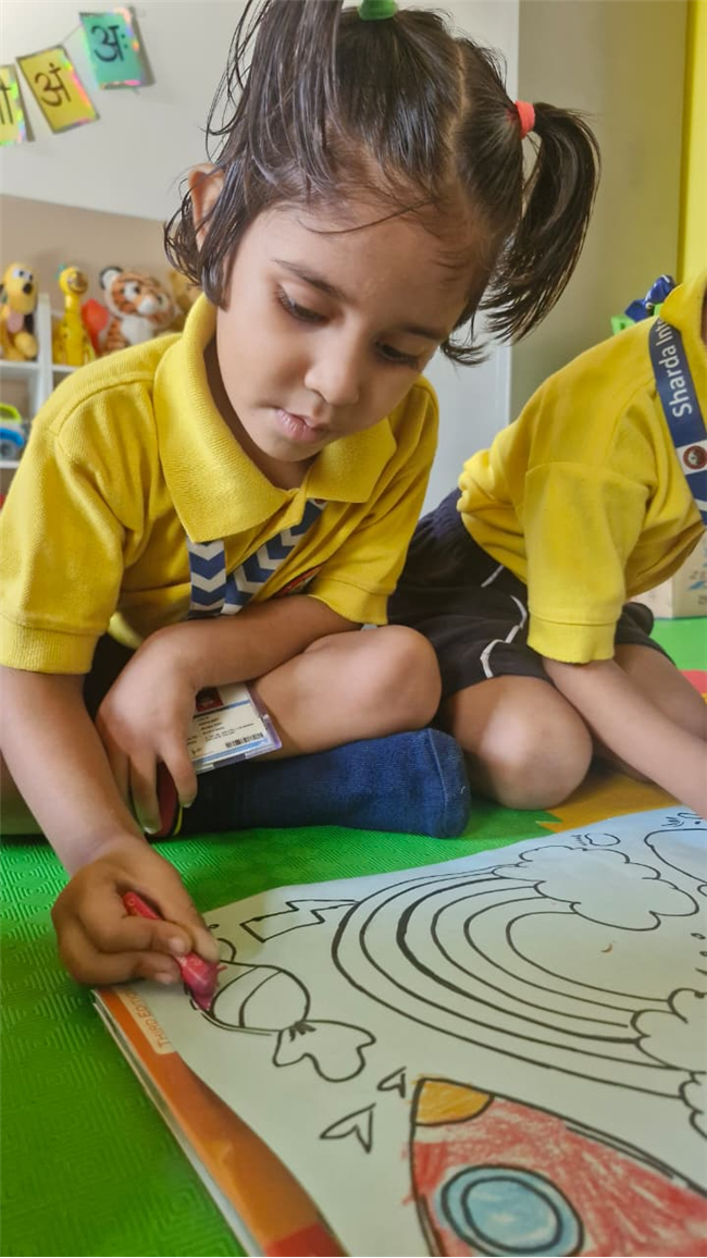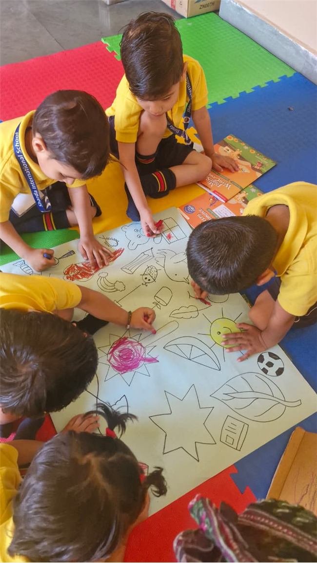 The activity helped the children to recognize different shapes and objects while enhancing their fine motor skills and focus. They took great interest in choosing their favorite colors and making their doodles come alive beautifully.