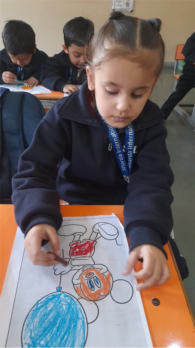 After the coloring activity, the students watched a fun Mickey Mouse movie. They laughed, clapped, and enjoyed watching their favorite character on the screen. It was a wonderful day filled with creativity, learning, and lots of smiles.