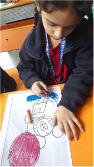 The children colored a beautiful picture of Mickey Mouse using bright and happy colors. They enjoyed choosing their favorite colors and making their Mickey look special.