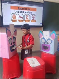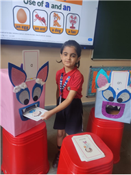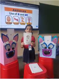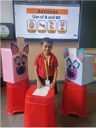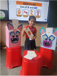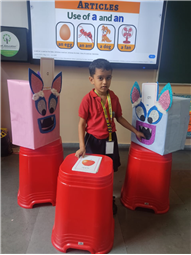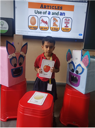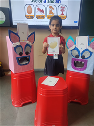 On 18th September, In our kindergarten class, children enjoyed a fun activity on learning the use of “a” and “an” with the help of colorful monster characters. We introduced two friendly monsters – A Monster who eats words that begin with consonants, and An Monster who eats words that begin with vowels. The children picked different picture cards like apple, cat, orange, bat, and igloo, and decided which monster the word should go to.