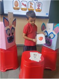 Through this playful game, children practiced saying sentences like “This is a cat” and “This is an apple.” The monster activity made grammar exciting, interactive, and easy for them to understand. It also encouraged participation, teamwork, and lots of laughter in the classroom.