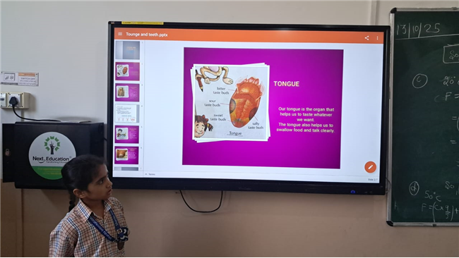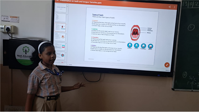 An activity on "Tongue and Teeth – Flip Teaching" was held in Class 4. Students participated with eagerness. The aim was to promote active learning in a fun and engaging way.