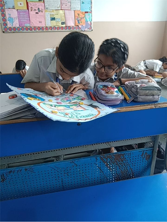 विद्यार्थियों ने अपने चित्रों में उगते सूर्य, चिड़ियों की चहचहाहट, ठंडी हवा और प्रकृति की सुंदरता को दर्शाया। सभी समूहों ने मिलकर बताया कि प्रातः भ्रमण करने से शरीर स्वस्थ रहता है, मन प्रसन्न होता है, ताज़गी मिलती है और दिनभर ऊर्जा बनी रहती है।