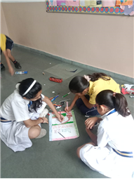 पूरी कक्षा को तीन-तीन विद्यार्थियों के समूहों में विभाजित किया गया। प्रत्येक समूह को प्रातःकालीन दृश्य का अवलोकन कर सूर्योदय का वर्णन चित्र के माध्यम से प्रस्तुत करने तथा प्रातः भ्रमण के लाभ लिखने का कार्य सौंपा गया।
