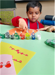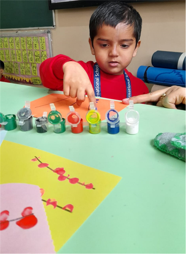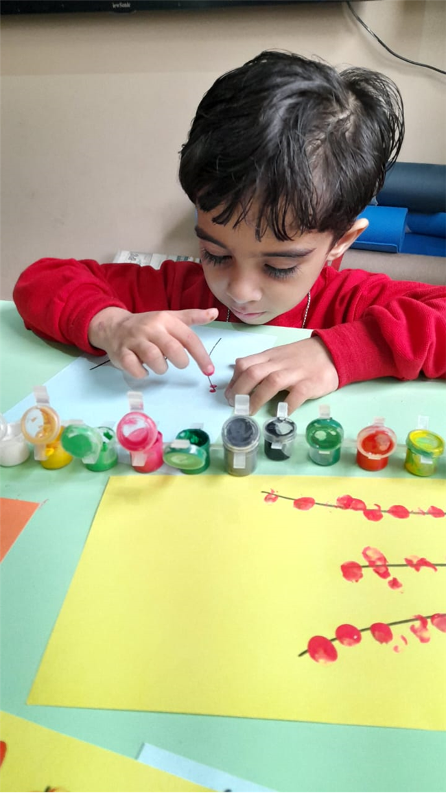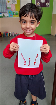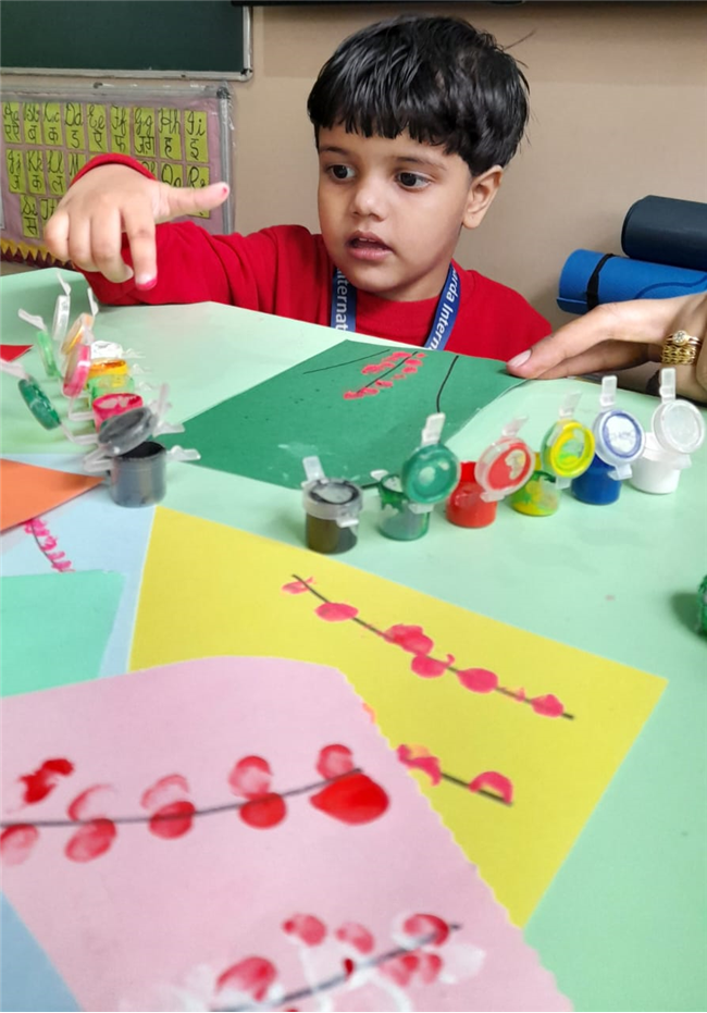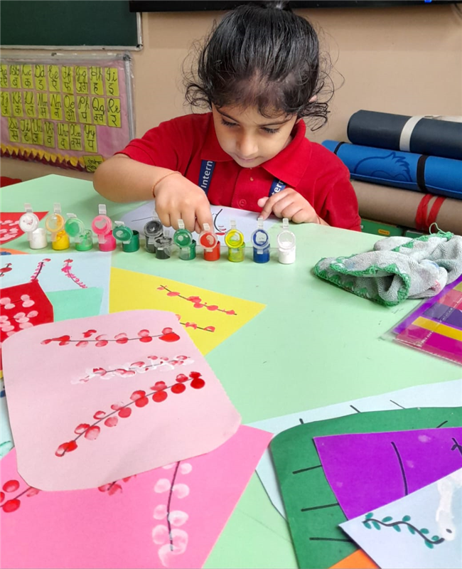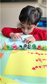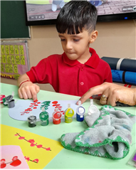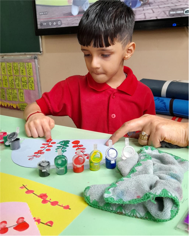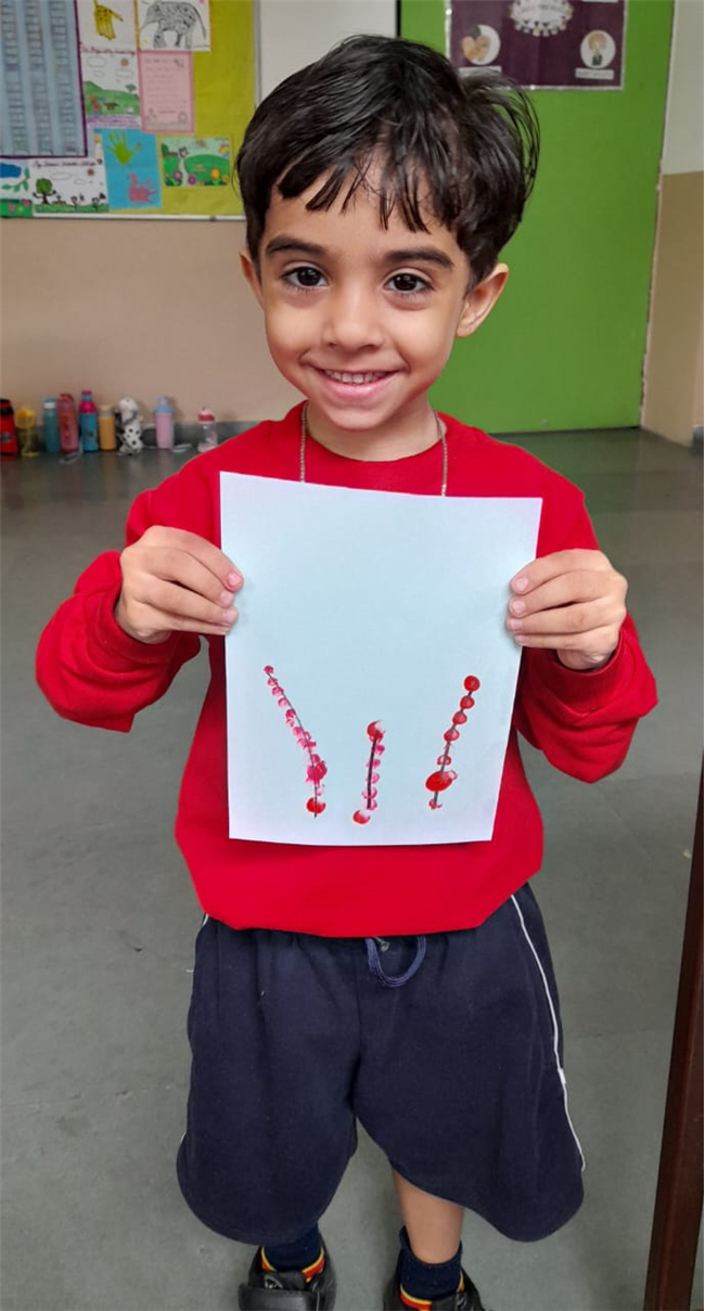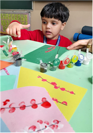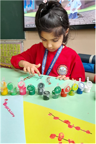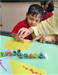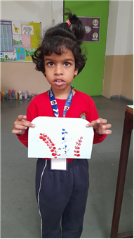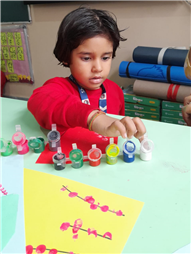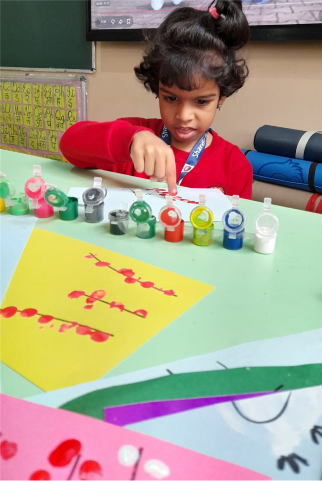 On 30th October, our children enjoyed the Thumb Printing activity with great excitement. They dipped their thumbs in different bright colours and created beautiful patterns and pictures using their thumb impressions. The activity helped them explore their creativity and learn about colours and shapes in a fun way. They had a wonderful time making colourful prints and patterns with their tiny thumbs!