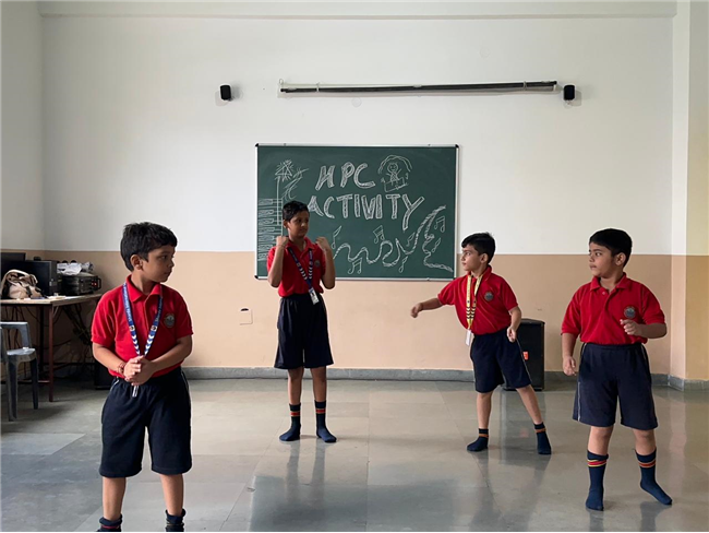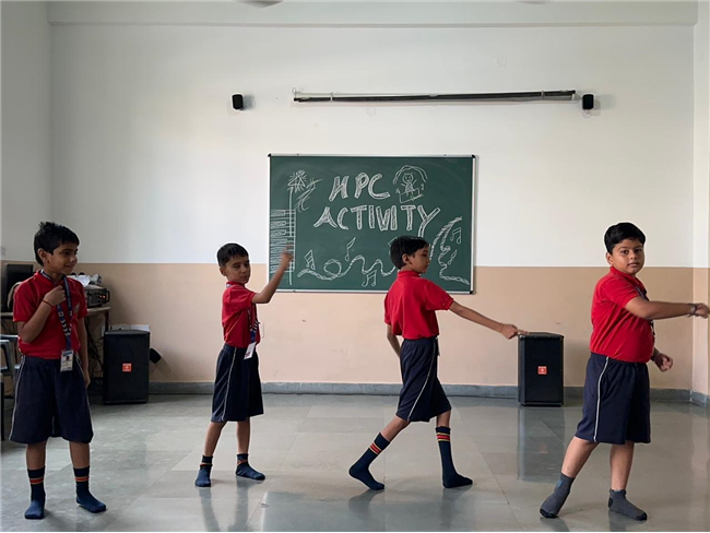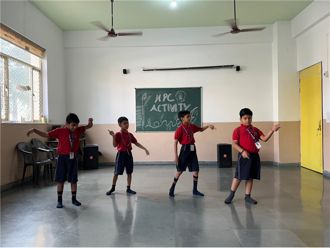 In this activity, Class 2nd students will use simple dance movements to show daily actions like waking up, walking, playing, and helping at home. They will follow the music, create small steps, and enjoy dancing together while learning rhythm and coordination.