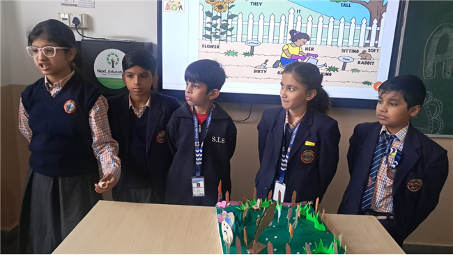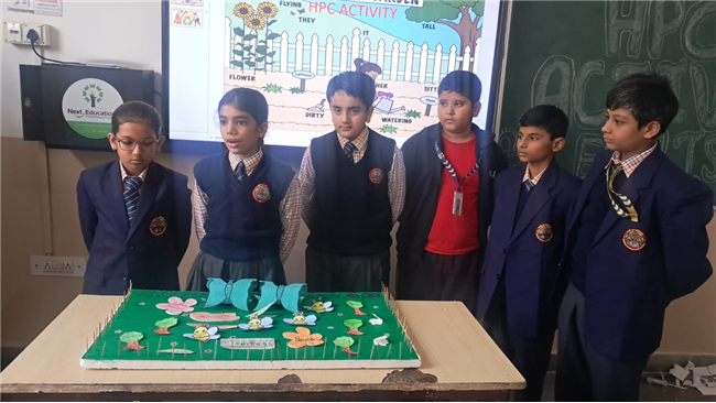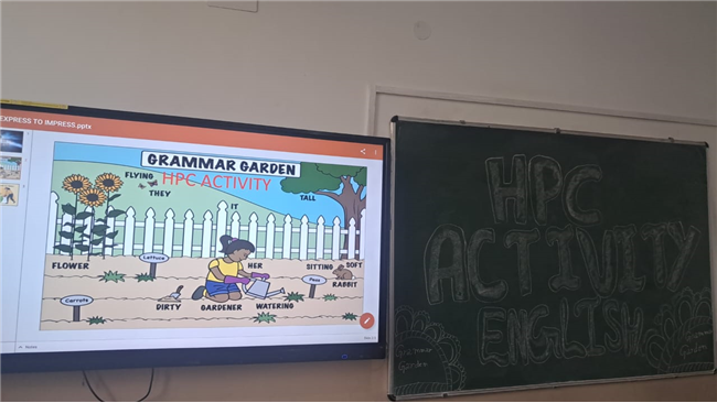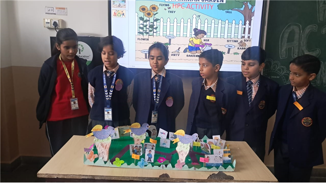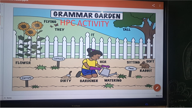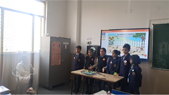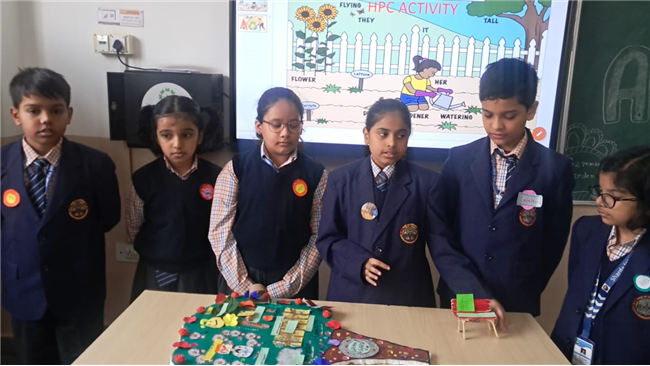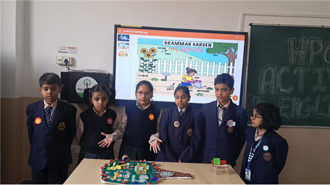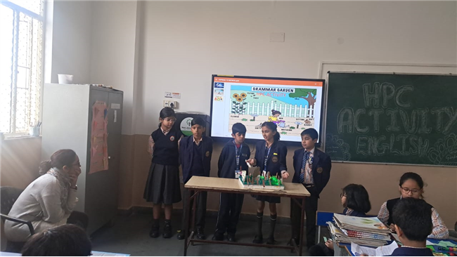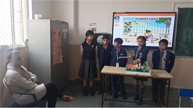 An HPC activity was conducted today in Class 5 in the English subject. All the enthusiastic and energetic students participated by creating their own colourful and creative Grammar Gardens using all the parts of speech. The students showed great interest and excitement throughout this engaging activity. The class was divided into groups, and each group designed its own beautiful and unique Grammar Garden. After completing their work, every group confidently presented their wonderful and well-organised garden in front of the class.