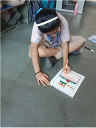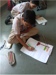 छात्रों ने सुंदर तिरंगे का चित्र बनाया और उससे संबंधित महत्वपूर्ण तथ्यों एवं जानकारी जैसे— रंगों का अर्थ, अशोक चक्र का महत्व आदि लिखे तथा मौखिक रूप से प्रस्तुत किया।