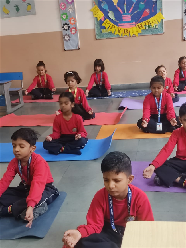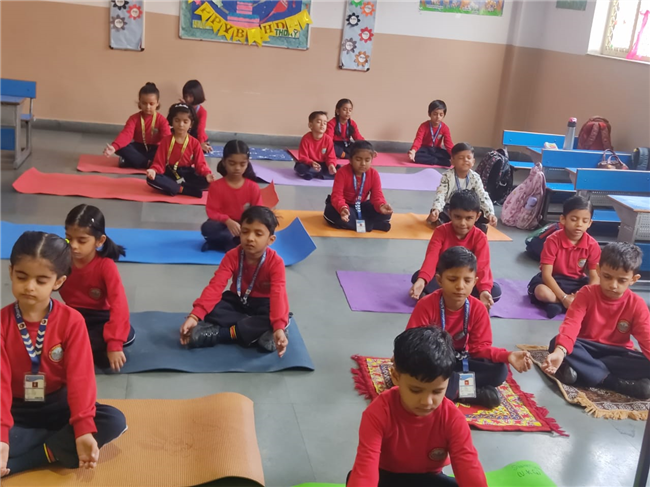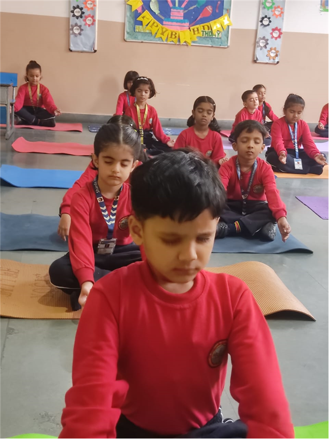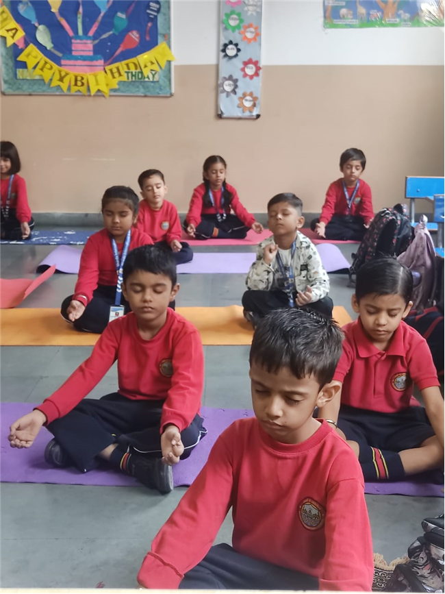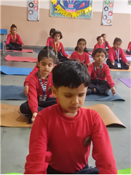 A Meditation Activity was conducted in the classroom to help children relax and improve their concentration. The students sat comfortably, closed their eyes, and took deep breaths while soft music played in the background. This peaceful session helped them calm their minds and feel refreshed. Through this activity, children learned the importance of mindfulness, focus, and inner peace. It was a wonderful way to start the day with positivity and a happy mind.