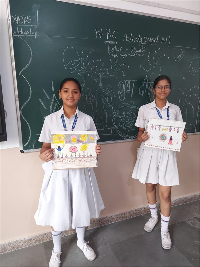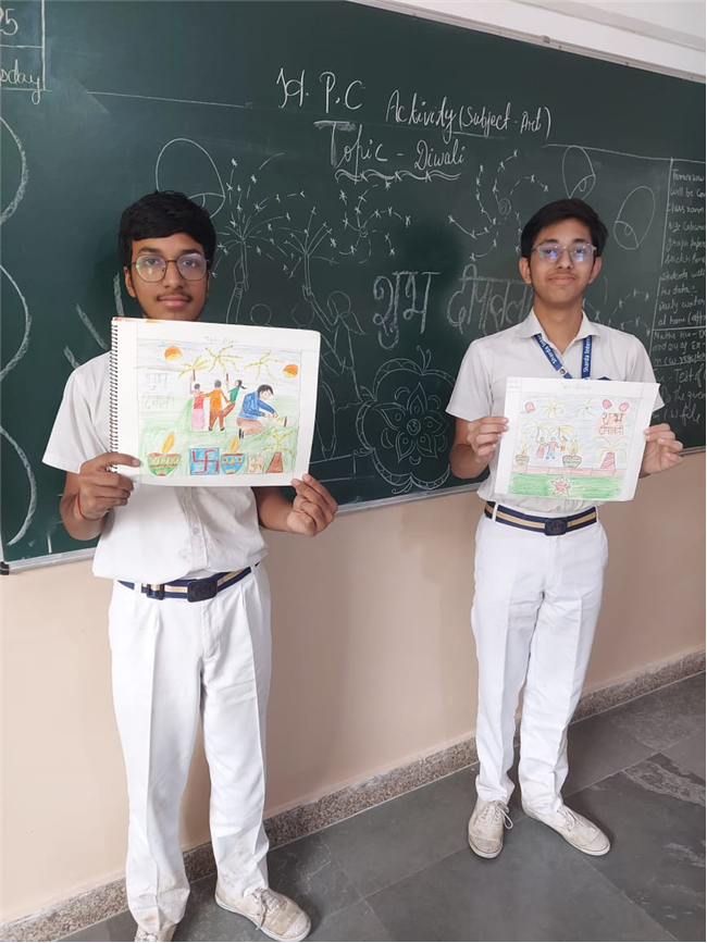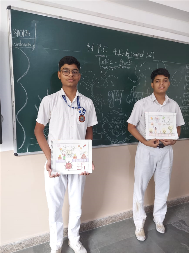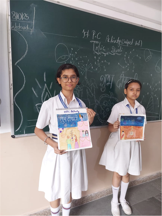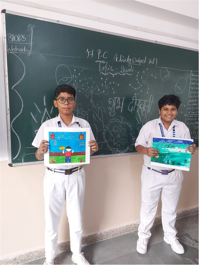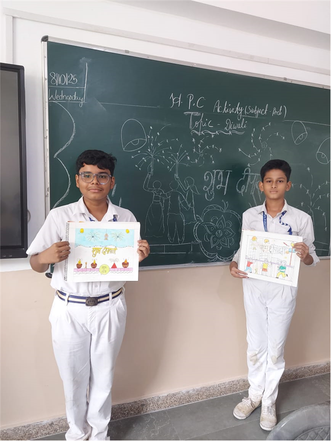 On 8th October 2025, class 9th students took part in HPC art activity to celebrate Diwali. The activity aimed to enhance creativity while introducing students to cultures symbols. Children actively participated, created with beautiful decorated drawings and grained awareness about the significance of Diwali.