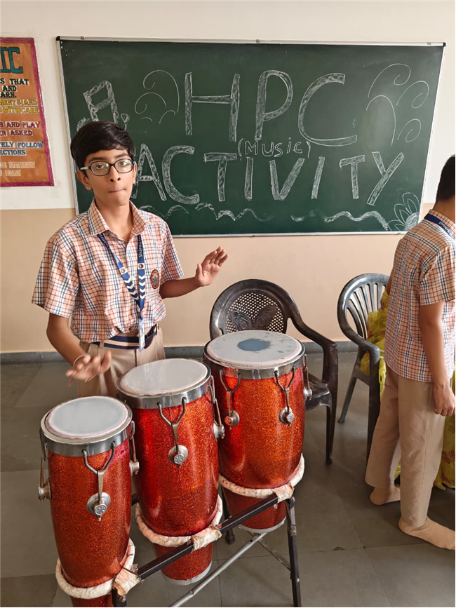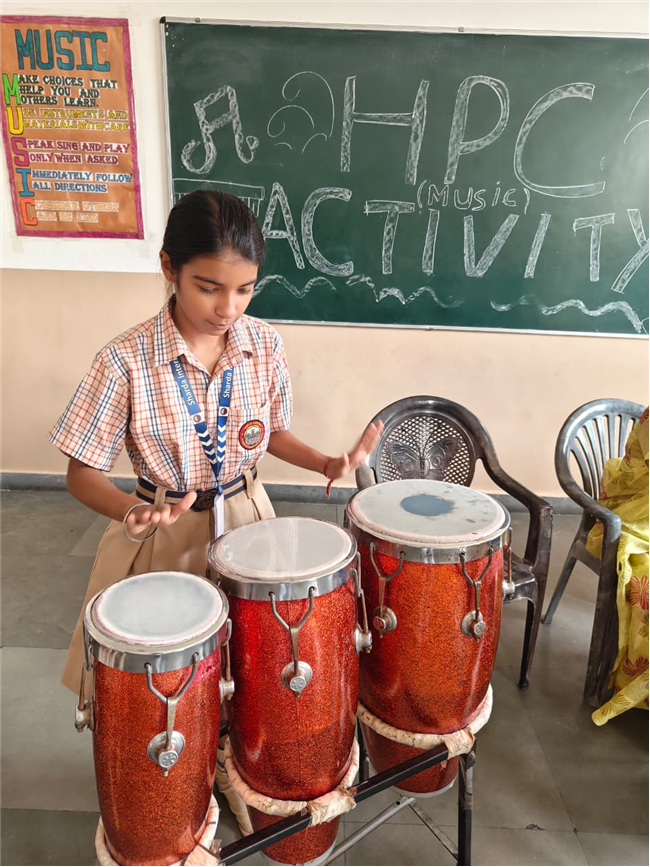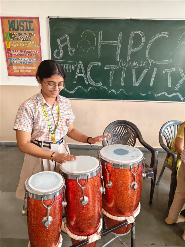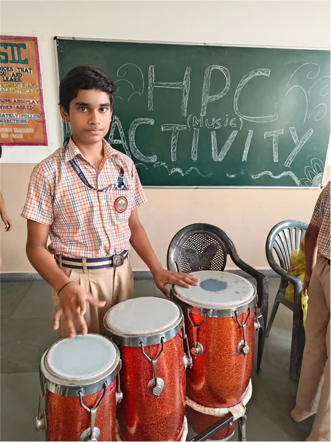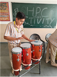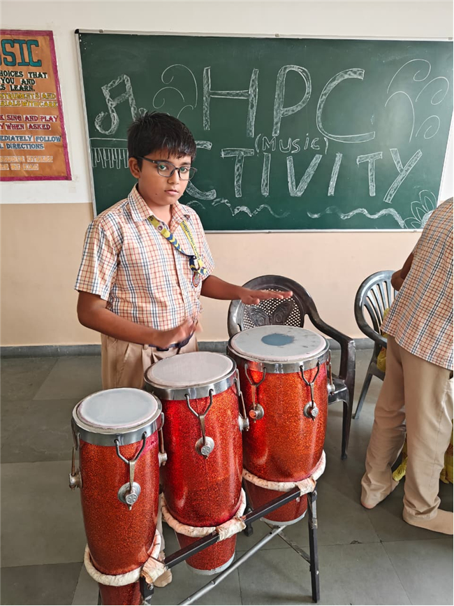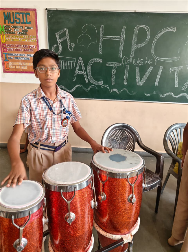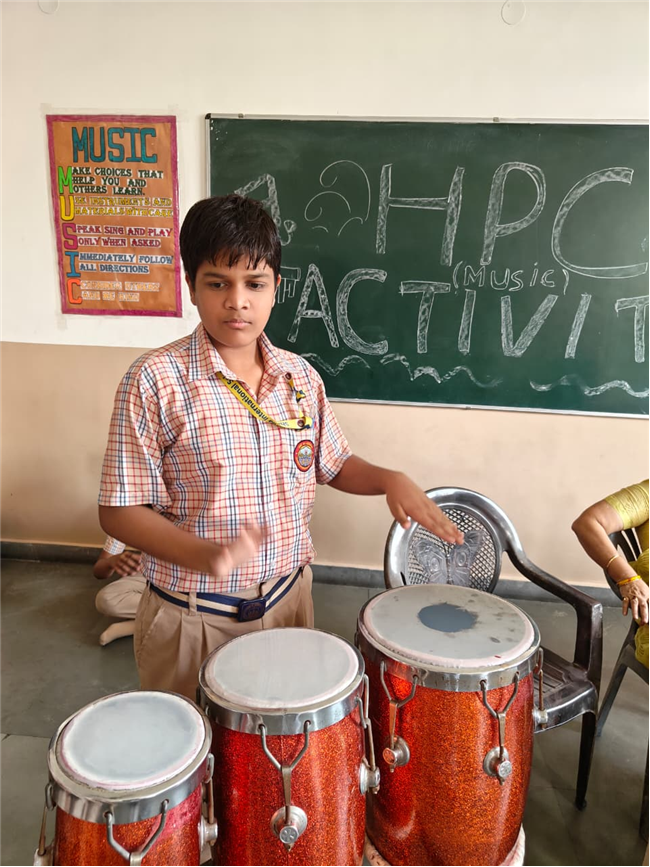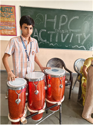 In this HPC activity, Class 8th students will explore basic musical beats and simple alankars through harmonium playing, Congo beats, and singing. They will learn to follow a steady rhythm and practice vocal patterns, helping them build a strong musical foundation and enjoy making music together.