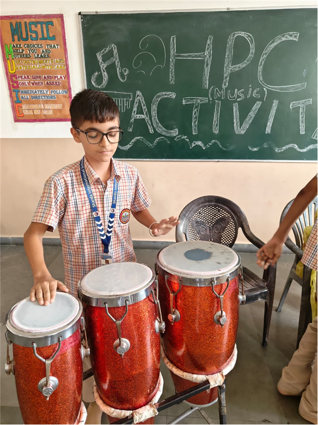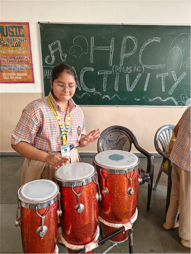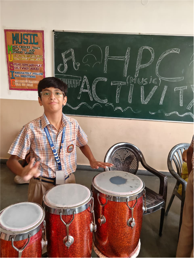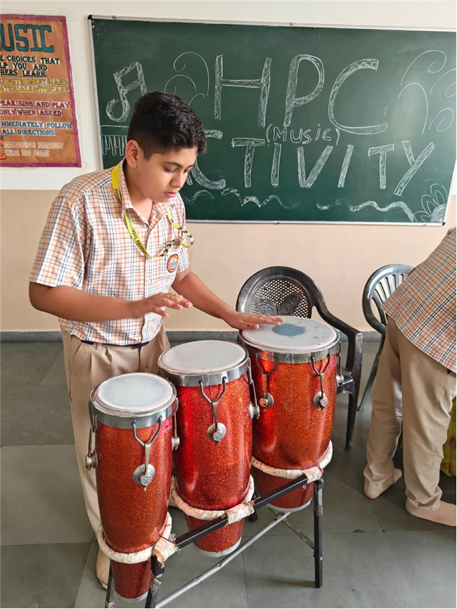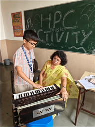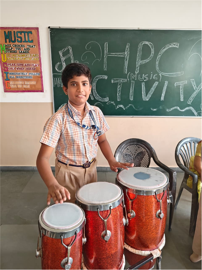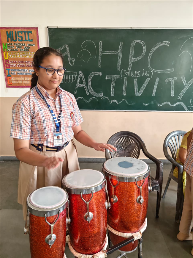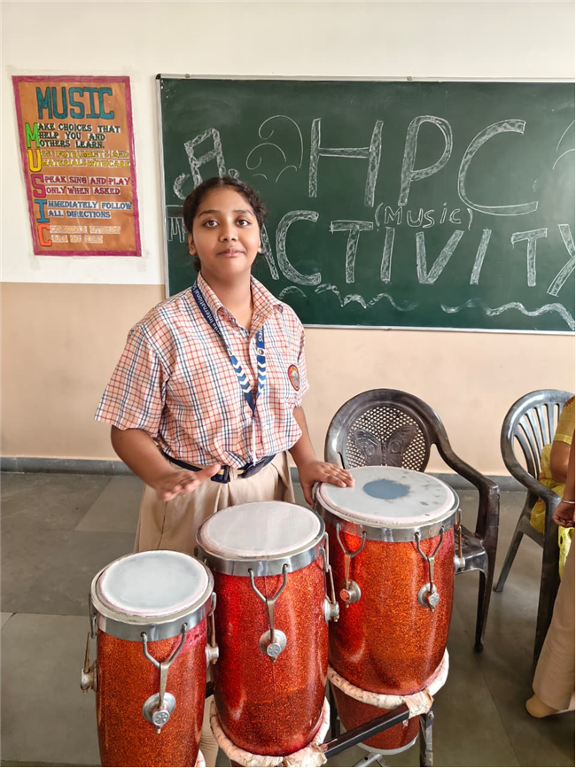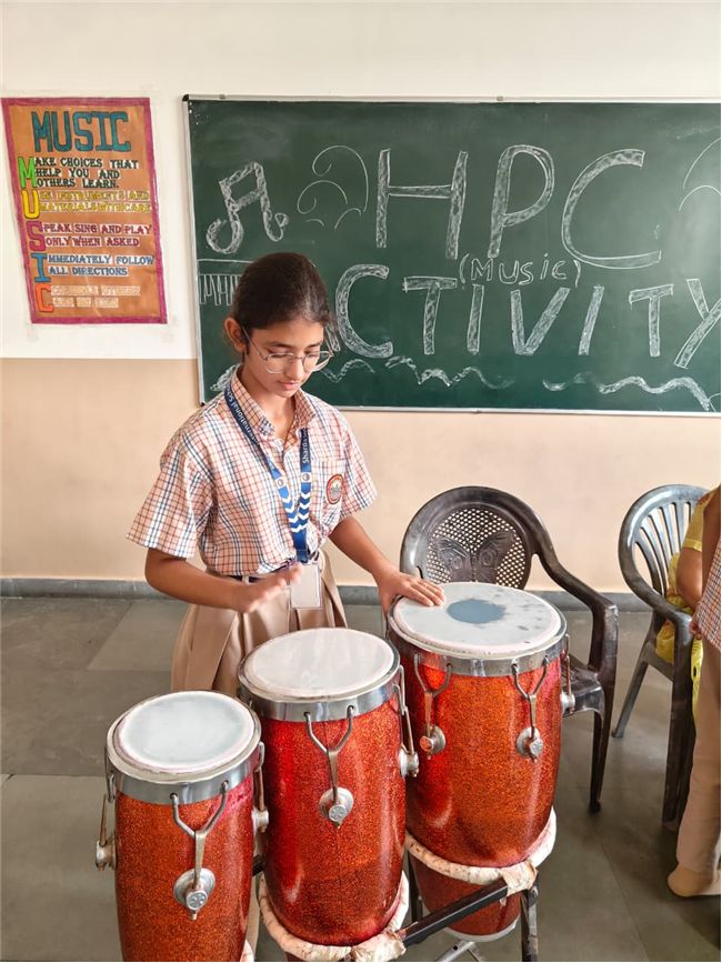 In this HPC activity, Class 8th students will explore basic musical beats and simple alankars through harmonium playing, Congo beats, and singing. They will learn to follow a steady rhythm and practice vocal patterns, helping them build a strong musical foundation and enjoy making music together.