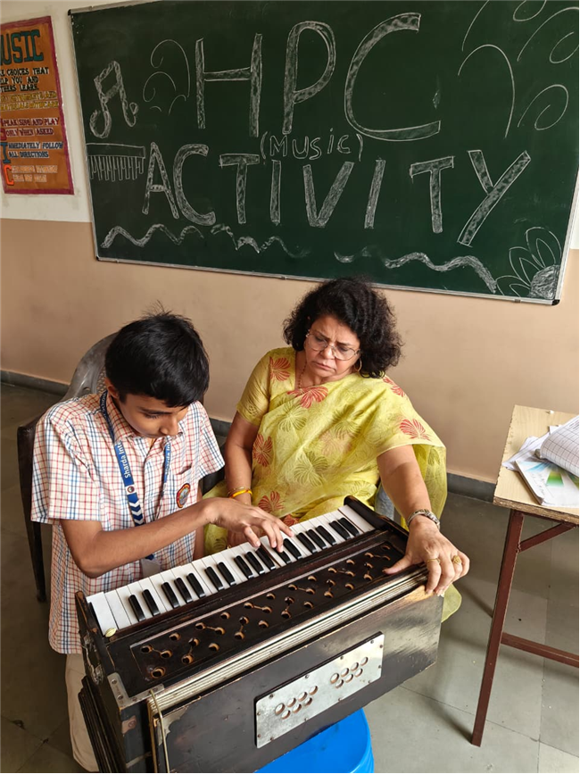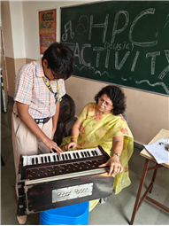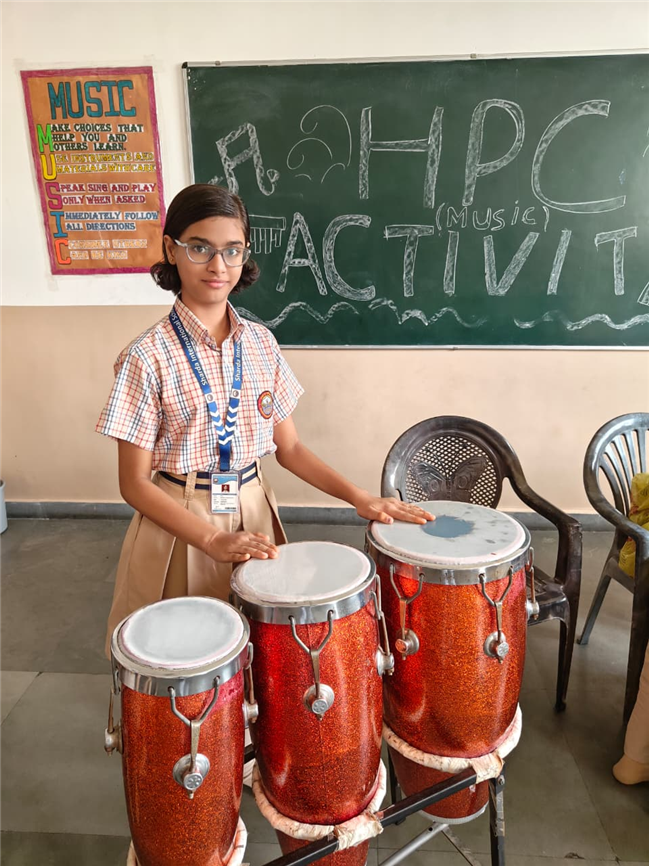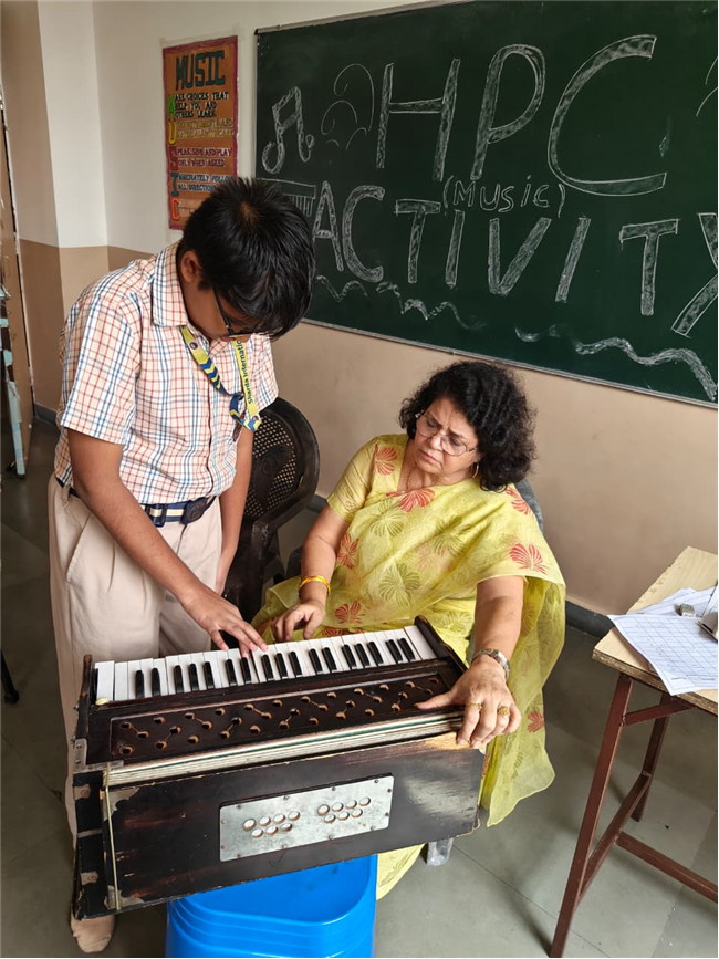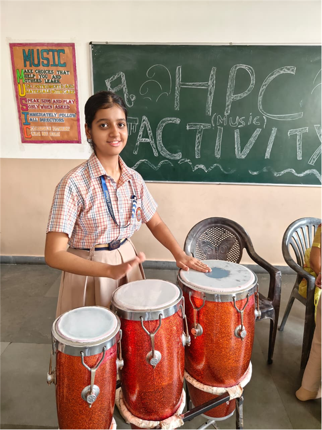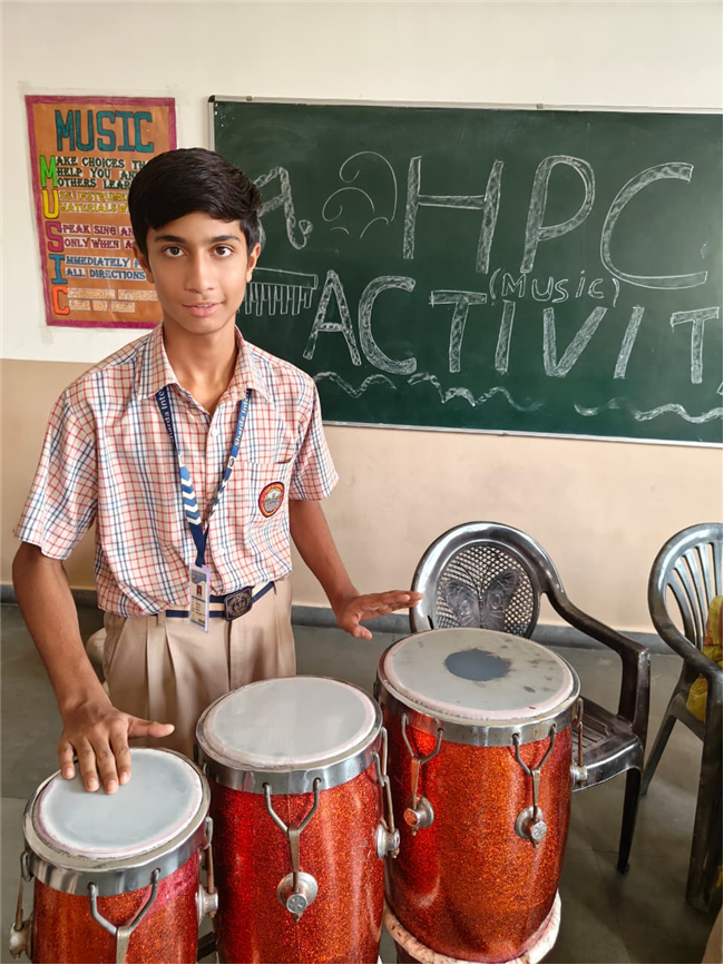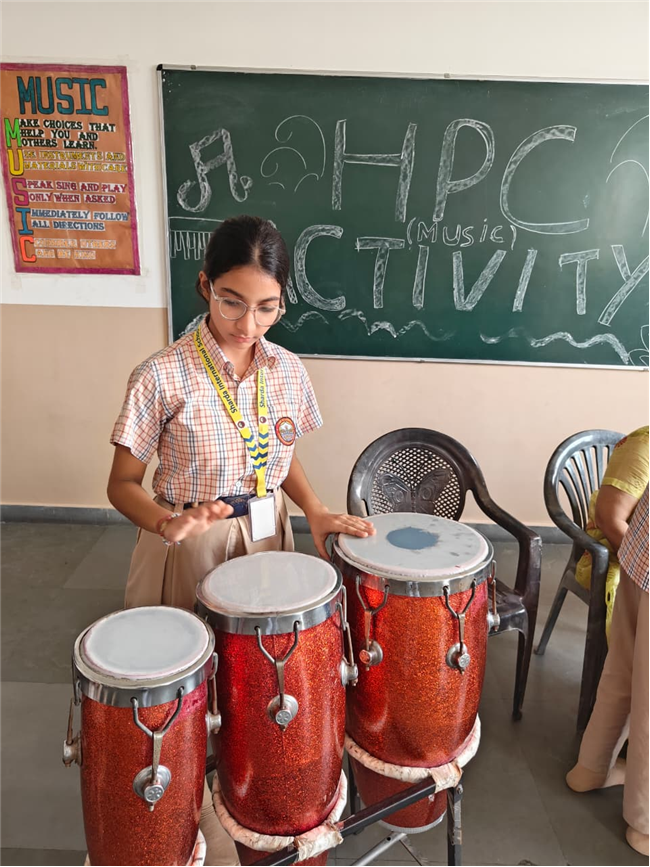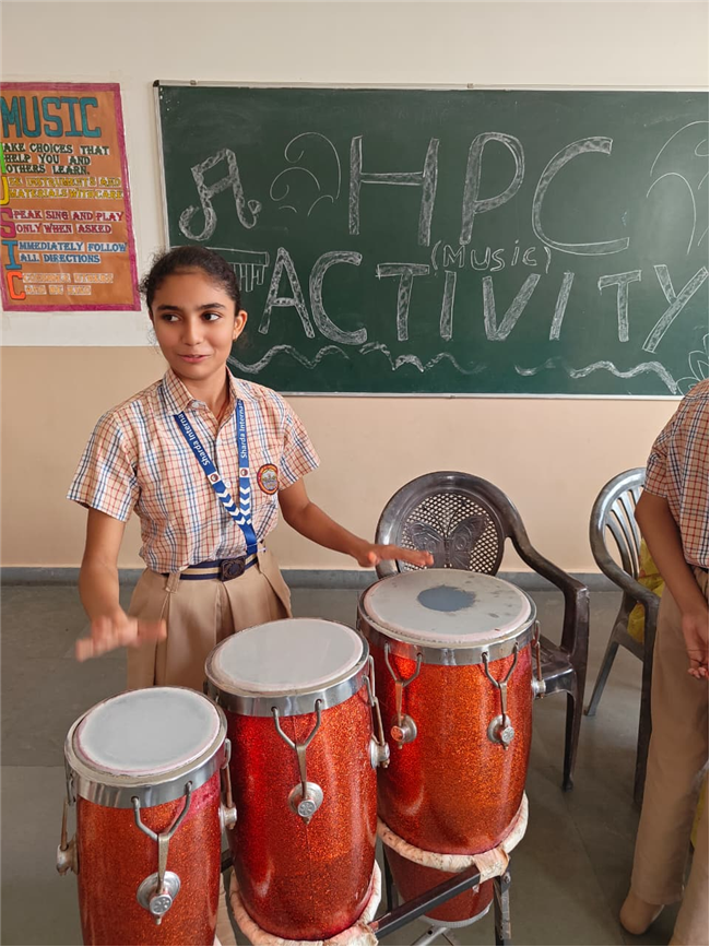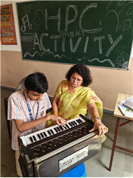 In this HPC activity, Class 8th students will explore basic musical beats and simple alankars through harmonium playing, Congo beats, and singing. They will learn to follow a steady rhythm and practice vocal patterns, helping them build a strong musical foundation and enjoy making music together.