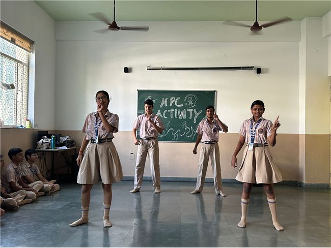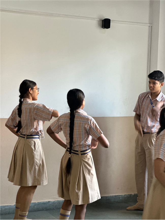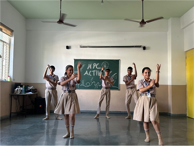 The students of Class 9 participated in a joyful dance activity titled “Move with Indian Culture Music.” Through this activity, students explored the beauty of India’s rich cultural heritage. They learned to express rhythm and emotions using traditional and folk music. The activity encouraged teamwork, coordination, and confidence while connecting students with India’s vibrant cultural traditions.