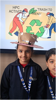 Today, an engaging HPC Activity titled “Trash to Trend” was conducted for Class 4 in the EVS subject. Students enthusiastically transformed waste materials such as newspapers, cardboard, bottles, and boxes into creative and useful items.After completing their task students presented their activity in front of the class. Through this hands-on experience, they showcased innovation while understanding the importance of responsible waste management.