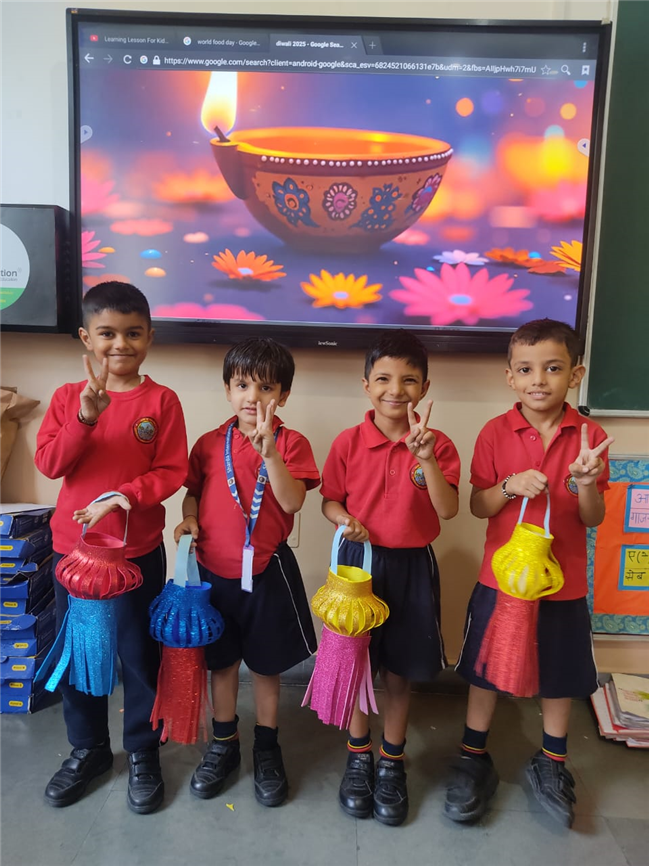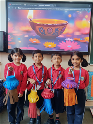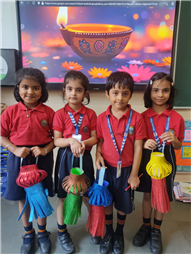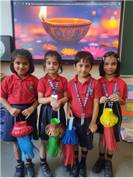 This activity helped the kids develop their creativity, fine motor skills, and understanding of Diwali traditions. It also taught them the value of light as a symbol of happiness and positivity. The bright glitter lamps added festive charm to the classroom and filled the school with Diwali cheer.