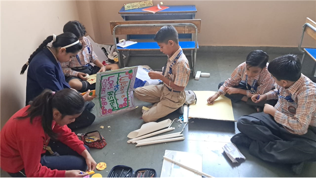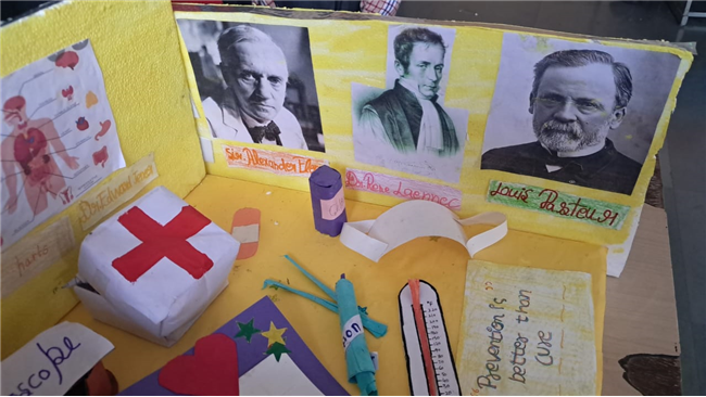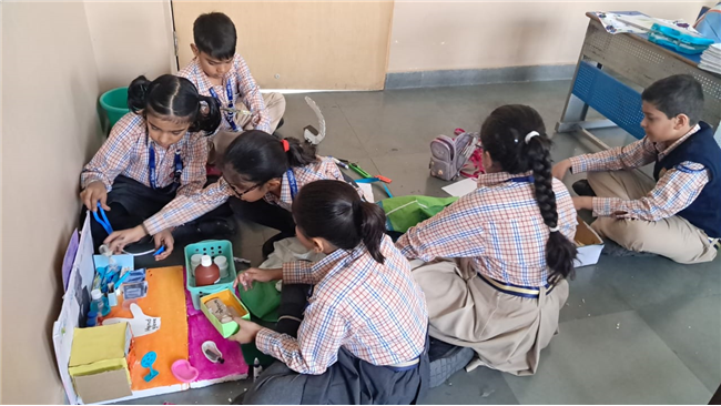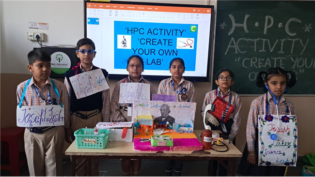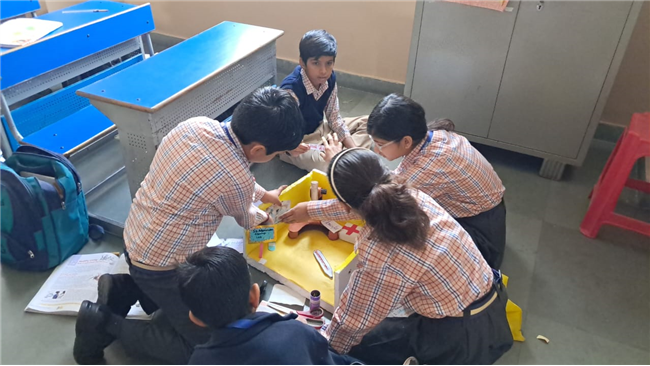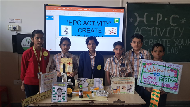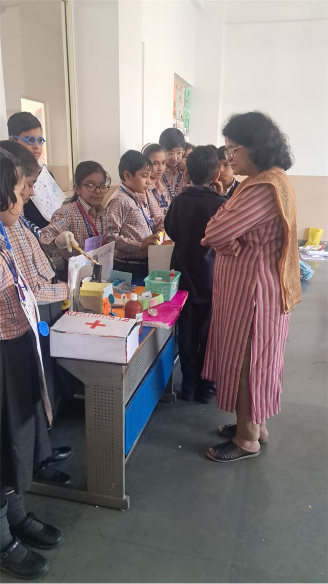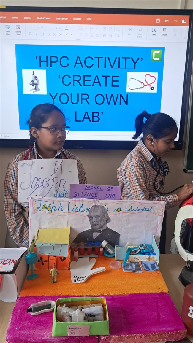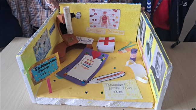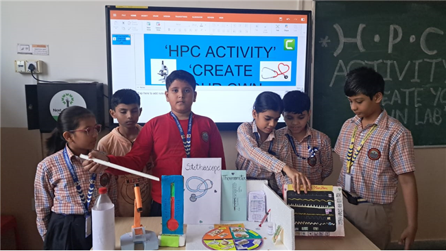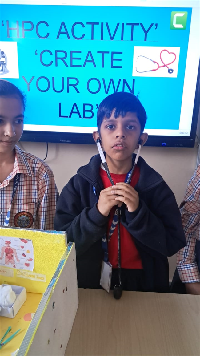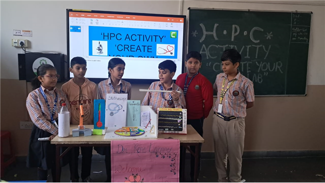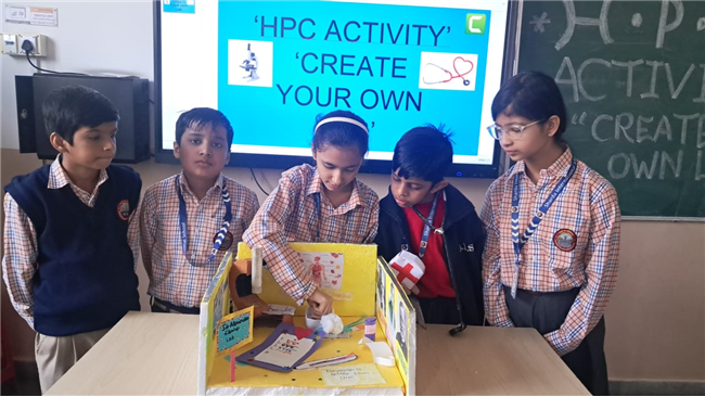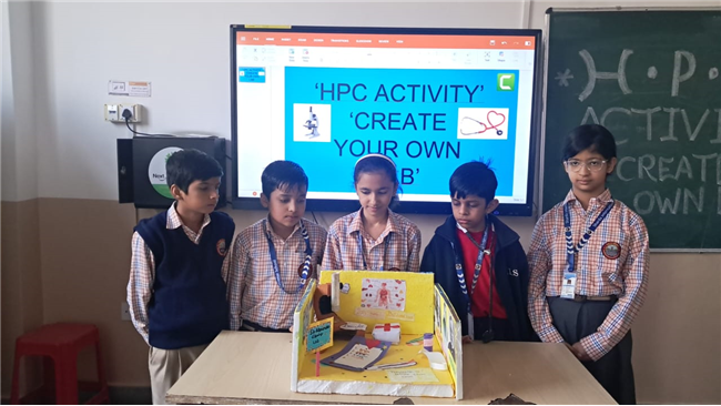 Class V enthusiastically participated in the HPC Activity on Healthy Living. The students were divided into groups and each group created their own health lab using different materials. They prepared models of instruments like thermometers, stethoscopes, X-ray machines, and vaccine setups. After completing their work, the groups presented their labs to the class, explained the use of each instrument, and confidently answered questions. The activity encouraged creativity, teamwork, and awareness about healthy living. It was truly a fun and meaningful learning experience for all.