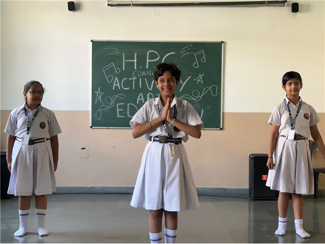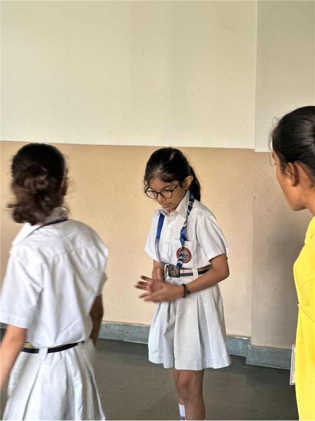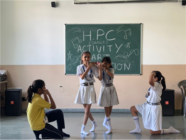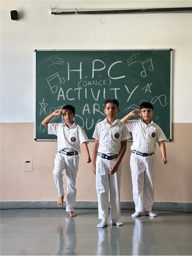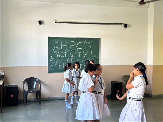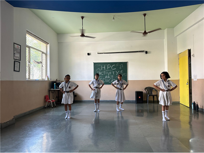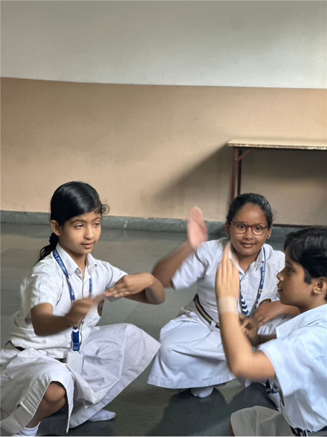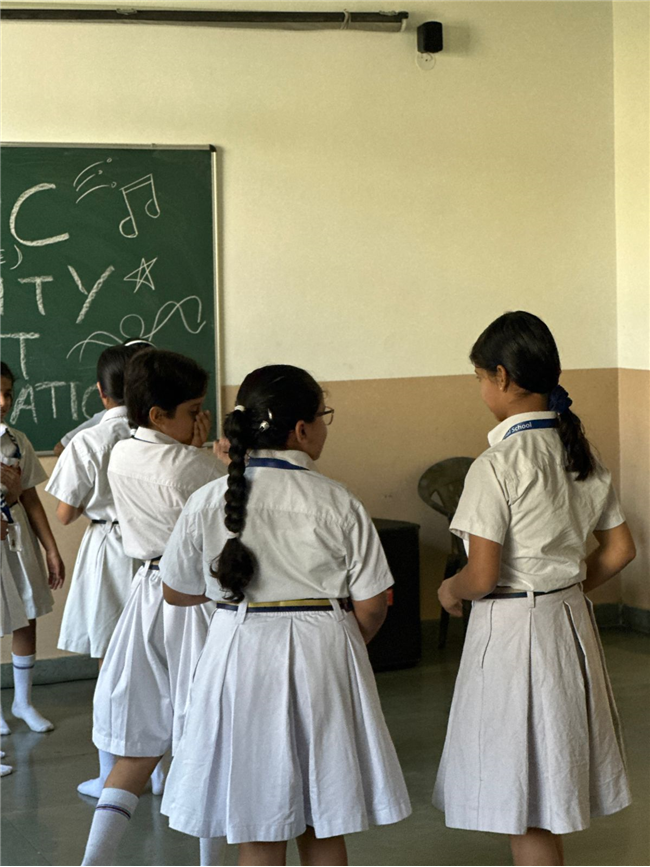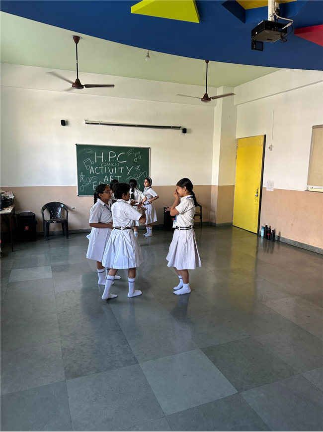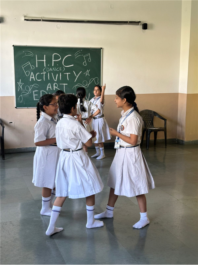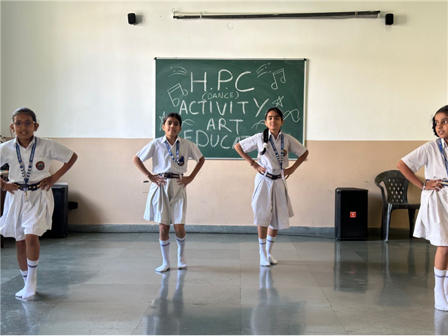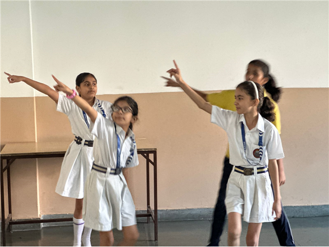 The students of Class 5 participated in a joyful dance activity titled "Celebrating festivals” Through this activity, students explored the beauty of India’s rich cultural heritage. They learned to express rhythm and emotions using traditional and folk music. The activity encouraged teamwork, coordination, and confidence while connecting students with India’s vibrant cultural traditions.